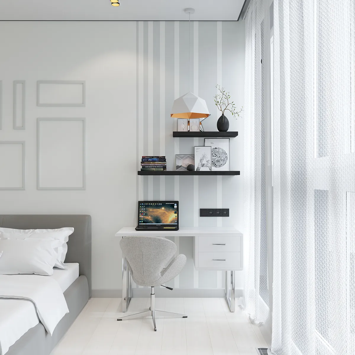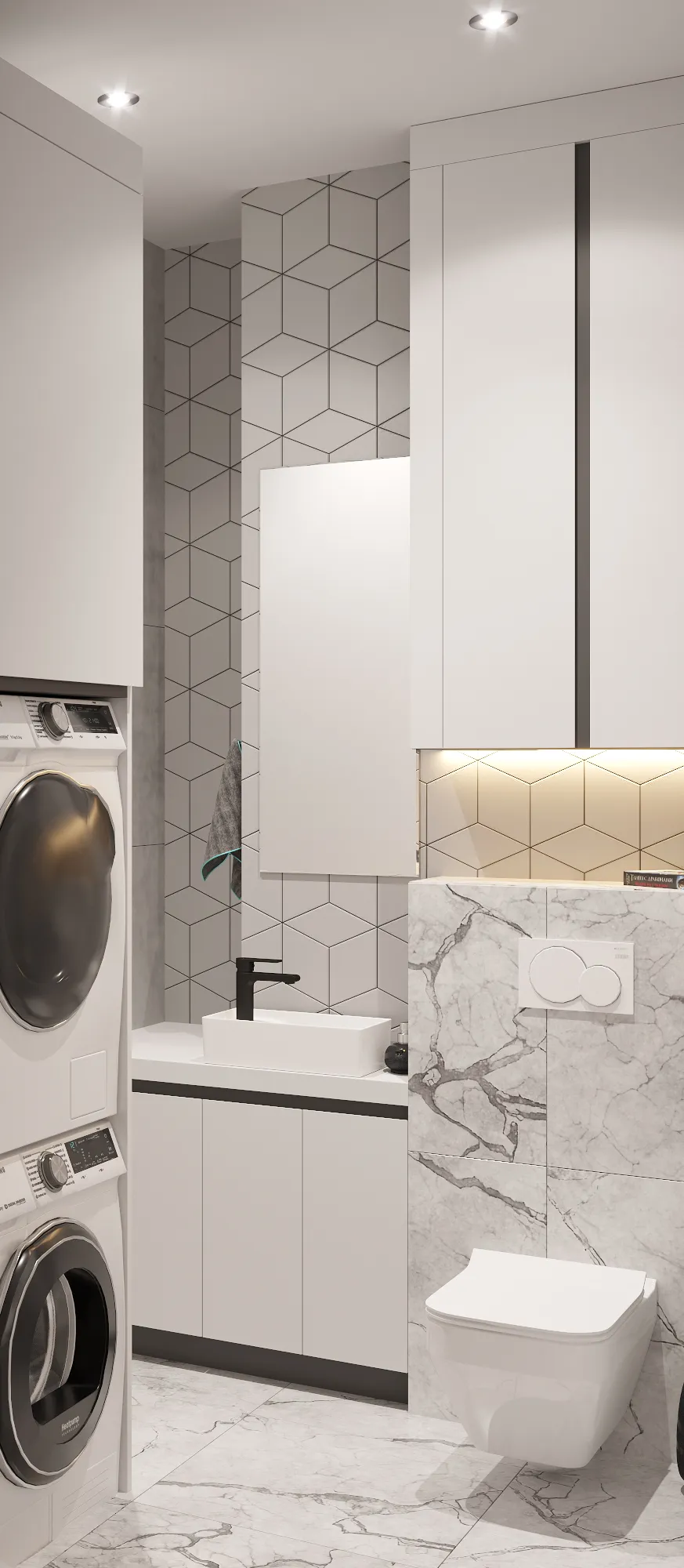 В квартире предусмотрены три комнаты и один санузел, что обеспечивает комфортное проживание и удовлетворяет все потребности современного городского жителя. Интерьер впечатляет своей элегантностью и практичностью, демонстрируя высокий профессионализм команды Sk-Oscar и их умение работать с пространством. Этот проект является ярким примером современного городского жилья, сочетающего в себе эстетику и удобство.