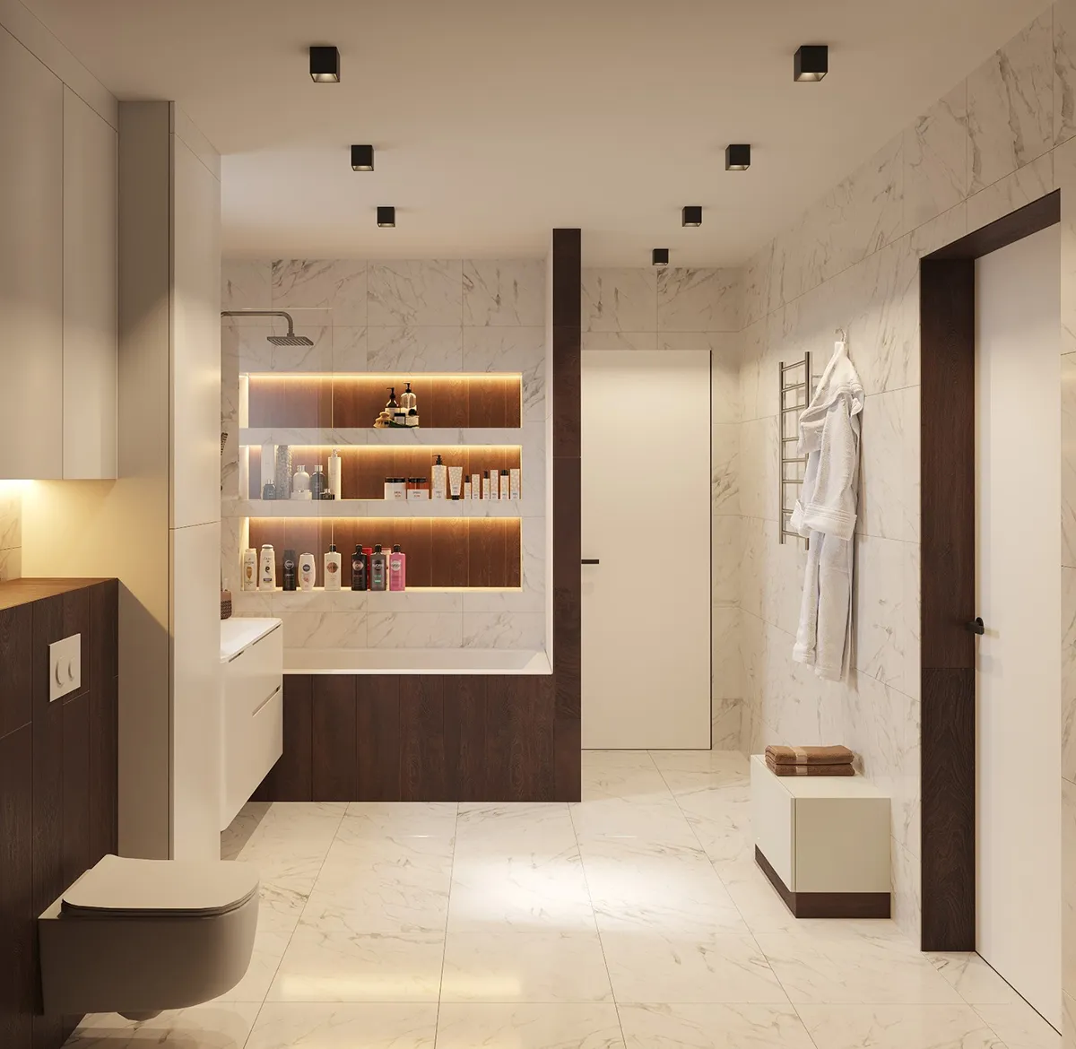 Особое внимание уделено освещению, где трековые светильники позволяют гибко настраивать свет в зависимости от потребностей. В результате получился стильный, светлый и просторный дом, идеально подходящий как для семейного проживания, так и для отдыха.